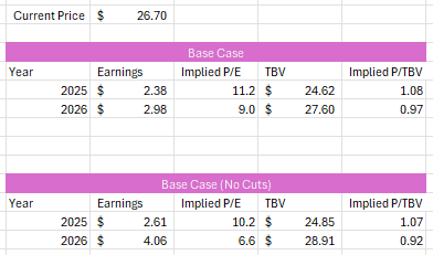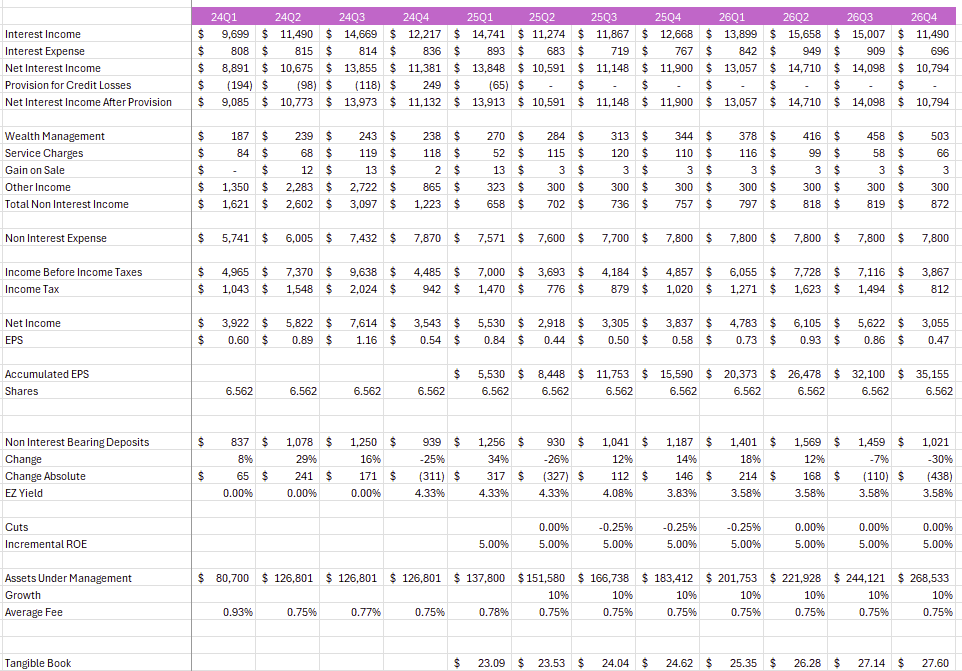 Assuming no rate cuts I arrive at 2025 EPS of $2.61 and 2026 EPS of $4.08.