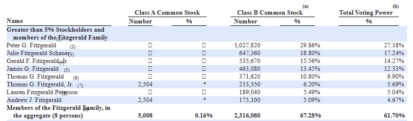Chain Bridge has a dual class structure, with approximately 4 Million Class A Nasdaq-Listed Shares and 2.5 Million Unlisted Supervoting Class B shares. All 2.5 Million Class B shares are controlled by the founding Fitzgerald family, the CEO, and CFO.