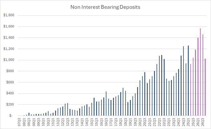 There is also significant political risk. Chain Bridge should be considered “The Bank of Trump”. Reckless policy and resulting poor fundraising would lead to lower average balance, reducing net interest income.